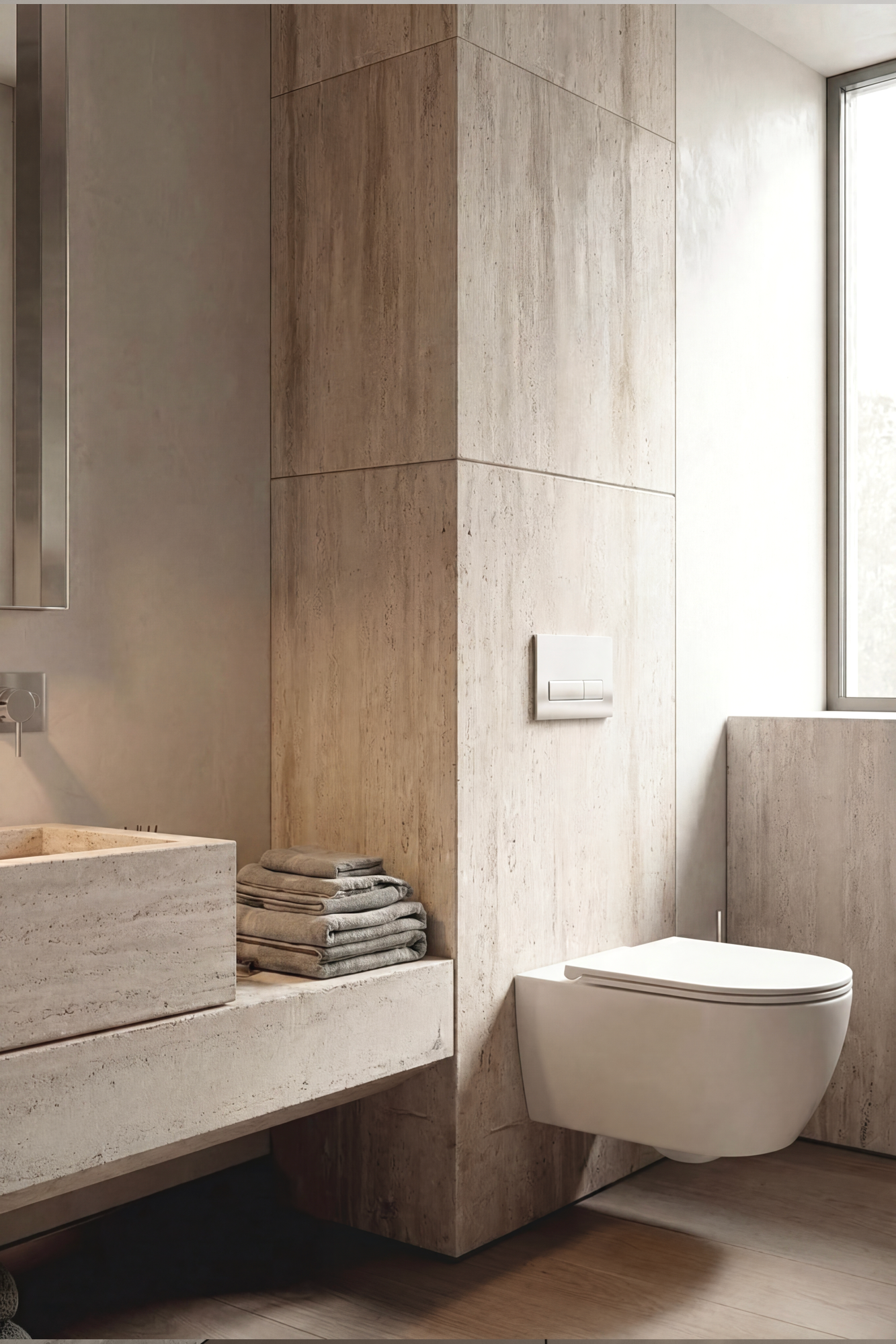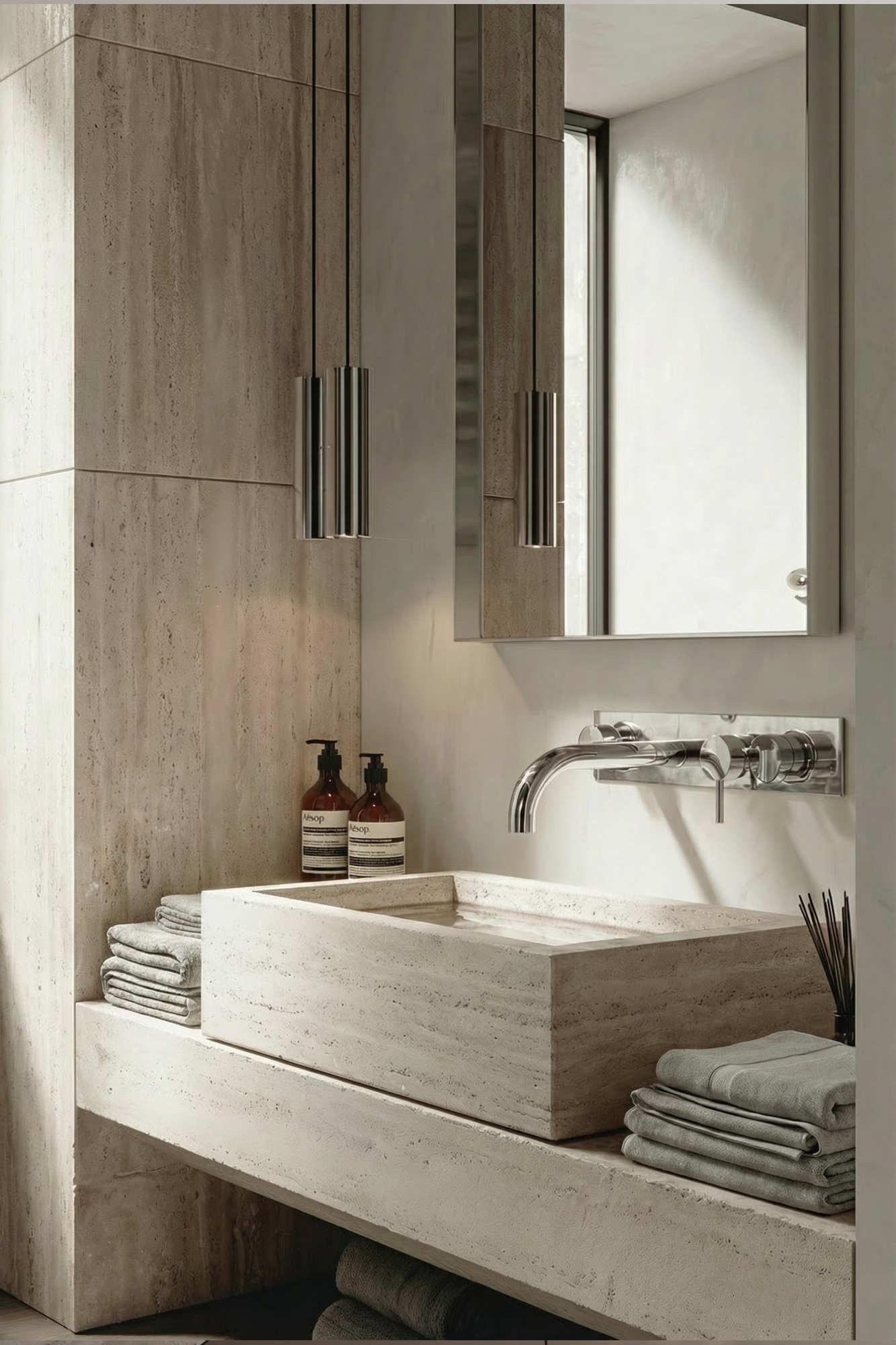 A calm space defined by  interplay of light and materials.